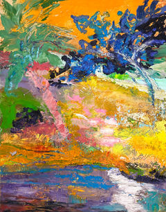 This series is rooted in observation and a visceral response to the world’s aliveness. These are imagined places, shaped not by geography but by the saturated impression of moments fully seen and felt. Inspired by time in France and the wild beauty of Northern California, each painting celebrates the sensual experience of landscape—color, movement, light, and form distilled through a painterly lens.